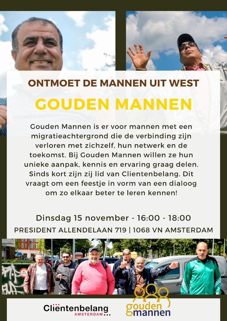 Sinds kort is de Stichting Gouden Mannen één van onze lidorganisaties. Deze gouden organisatie met een unieke aanpak is er voor mannen met een migratieachtergrond die de verbinding zijn verloren met zichzelf, hun netwerk en hun toekomst. Om kennis te maken met dit gouden initiatief en elkaar te versterken organiseren we met de Gouden Mannen een informele bijeenkomst. Natuurlijk is het ook fijn om alle lidorganisaties weer te spreken en te zien. Vandaar ook deze ontmoeting!