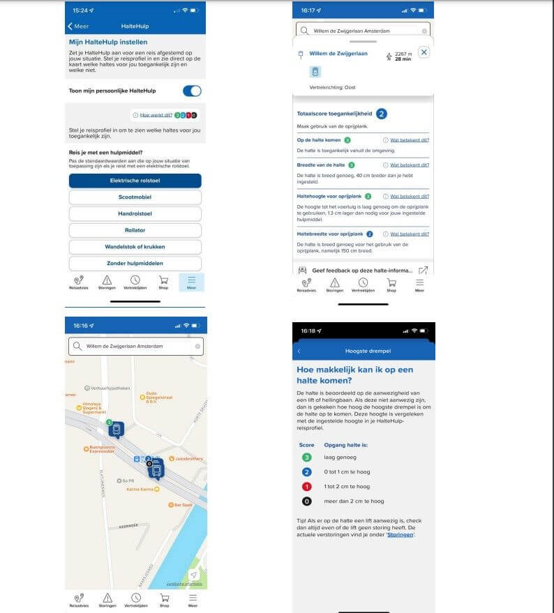 Reizigers kunnen een persoonlijk reisprofiel instellen zodat ze precies zien welke haltes voor hen toegankelijk zijn en via welke haltes zij het beste kunnen reizen. Resultaten zijn op de Gappie app zichtbaar op de stadskaart of plattegrond of als onderdeel van vertrektijden (zie bijlage). Haltehulp is vooraf getest met ons testpanel van ervaringsdeskundigen.