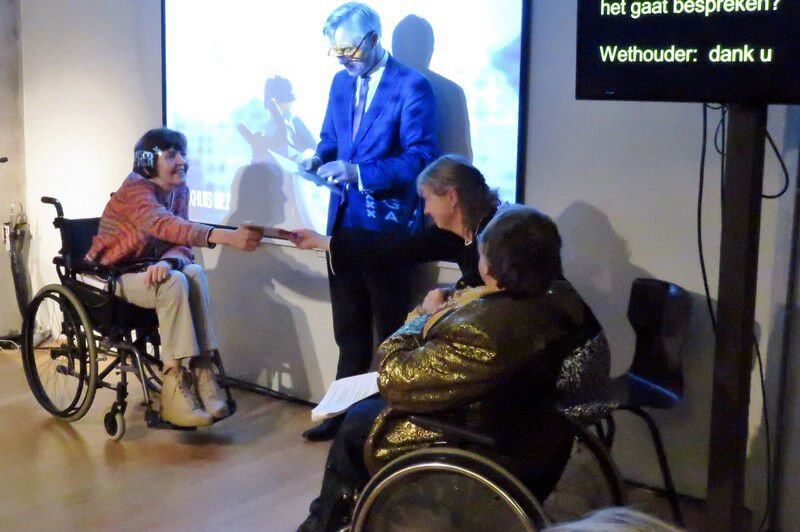 Haar meest zichtbare bijdrage leverde ze in 2017. Tijdens de bijeenkomst 'Stad zonder grenzen' in Pakhuis de Zwijger bood ze ons 'Manifest voor een Inclusief Amsterdam' aan aan toenmalig wethouder Zorg Eric van de Burg. Ook presenteerde ze de inhoud van ons Manifest. De bijeenkomst vond plaats in het kader van de Week van de Toegankelijkheid.