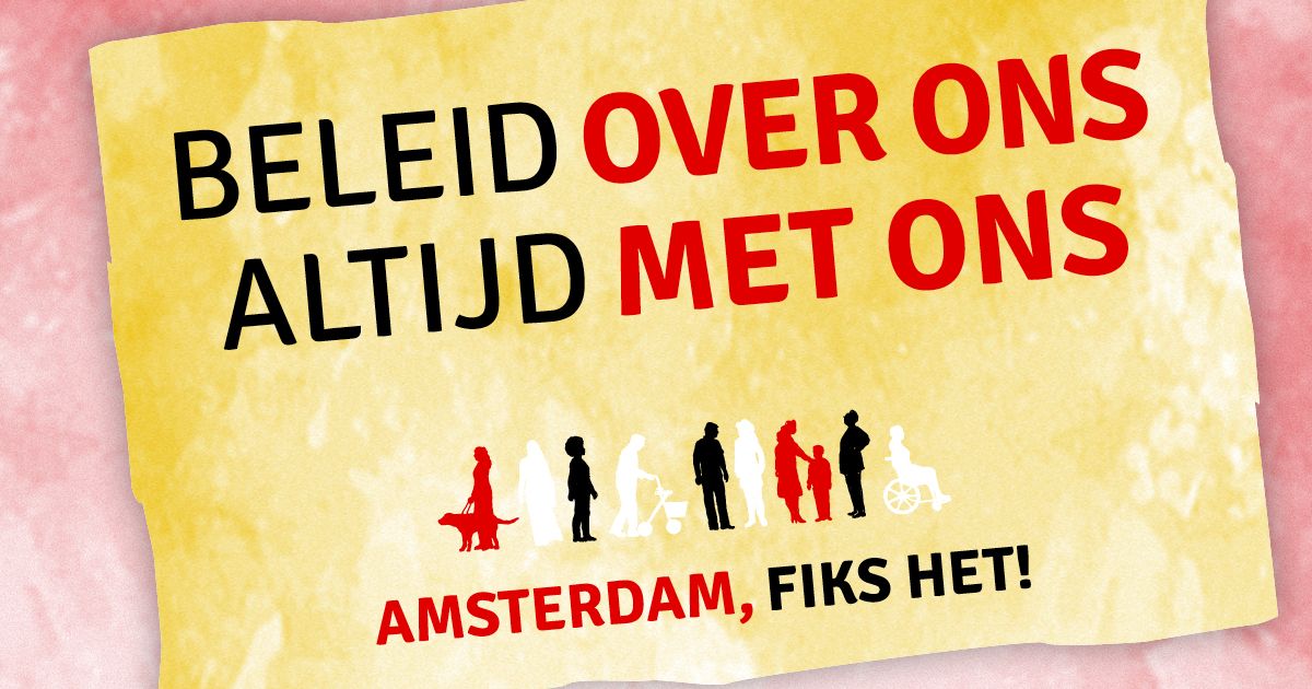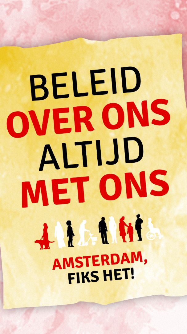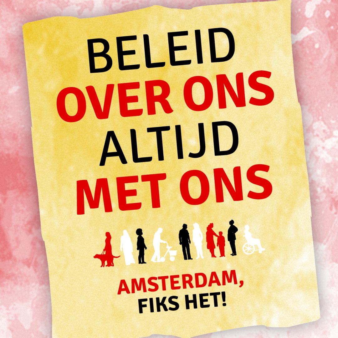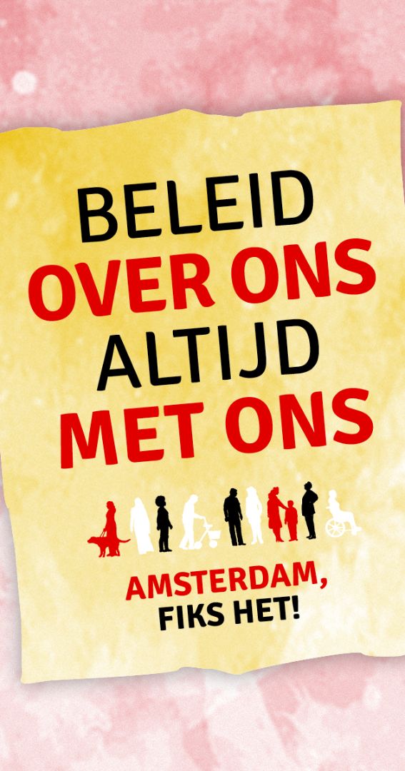 ‘Amsterdam 2030: Stad van radicale volwaardigheid’ is de titel van ons verkiezingsprogramma dat we eerder dit jaar hebben gepresenteerd. Dit vormt de basis voor onze campagne, waarin we de nieuw gekozen gemeenteraad tussen 2026 - 2030 oproepen om grote stappen te zetten richting een écht inclusieve stad.